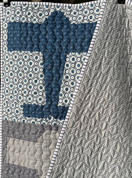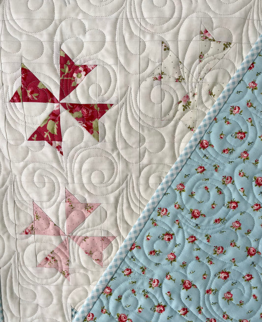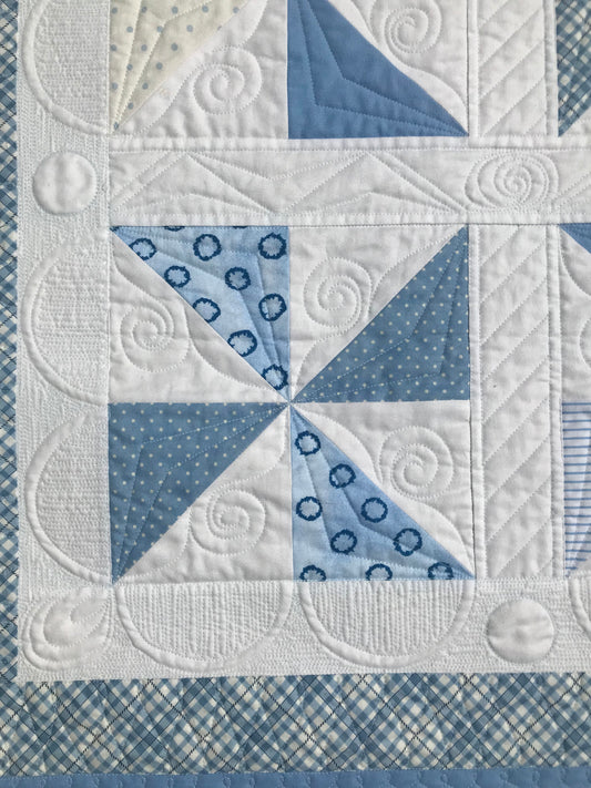Handmade Baby Boy Quilt - Blue & White Pinwheels: Baby Blanket - Custom Quilted - Heirloom Quality - Ready to Ship!