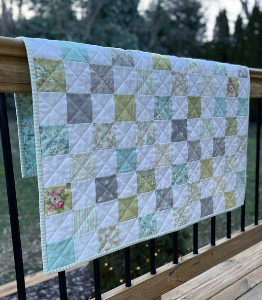 Handmade Aqua Floral Back Baby Girl Quilt, Baby Girl Blanket (37"x40") Ready to Ship!