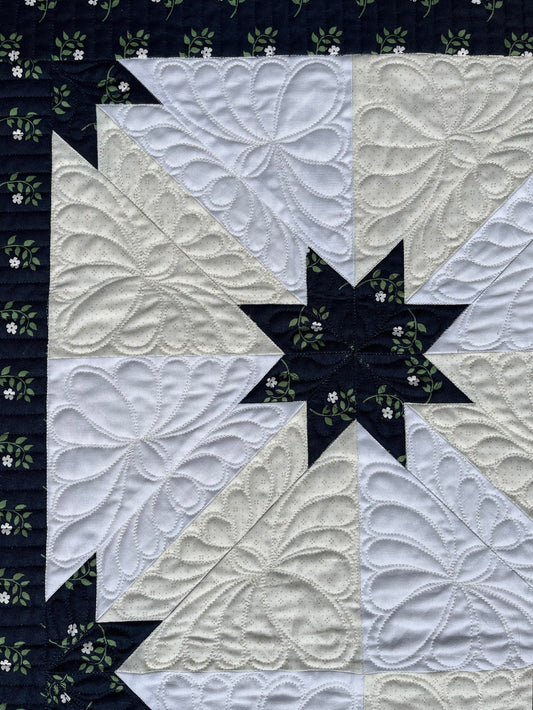 Custom Order for MH - Hunter's Star Quilt Table Topper, Navy, Cream, and White (36x36), Ready to Ship!