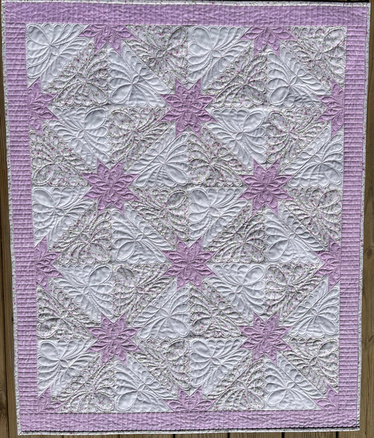 Custom Made for Jen - Handmade Hunter's Star Baby Quilt, Pink-Purple, Cream, White (34.5x42.5)