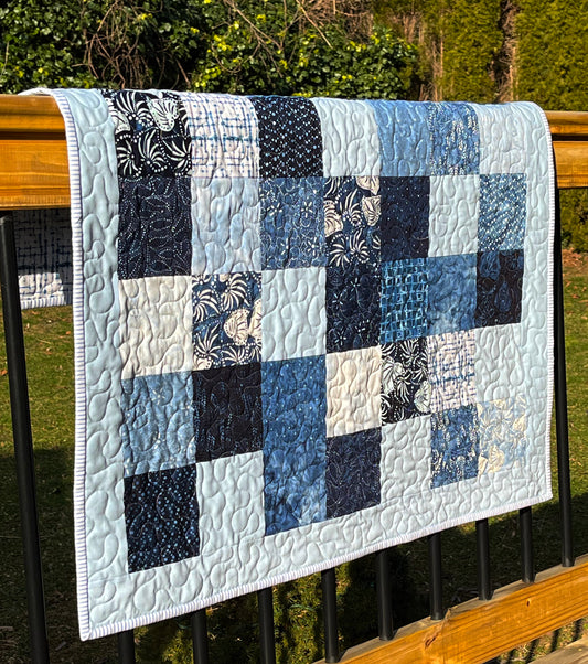 Handmade Baby Boy Quilt, Baby Blanket, Japanese Kasuri Print, Quilted Baby Mat, Baby Bath Mat (36x36) Ready to Ship!