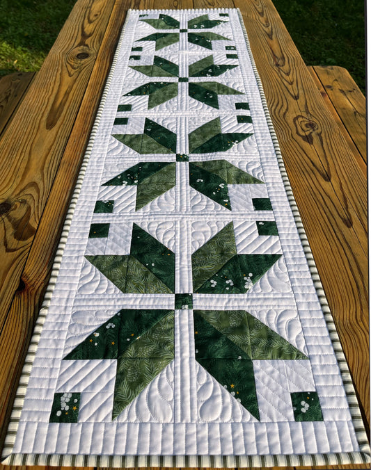 Custom Made for DC - Handmade Christmas Table Runner - Green Star - Custom Quilted - 15"x54"