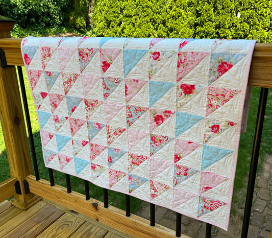Floral Handmade Baby Girl Quilt, One of a Kind Blanket, Custom Quilted Pinks, Cream, Baby Blue, Florals, Paisley - Ready to Ship