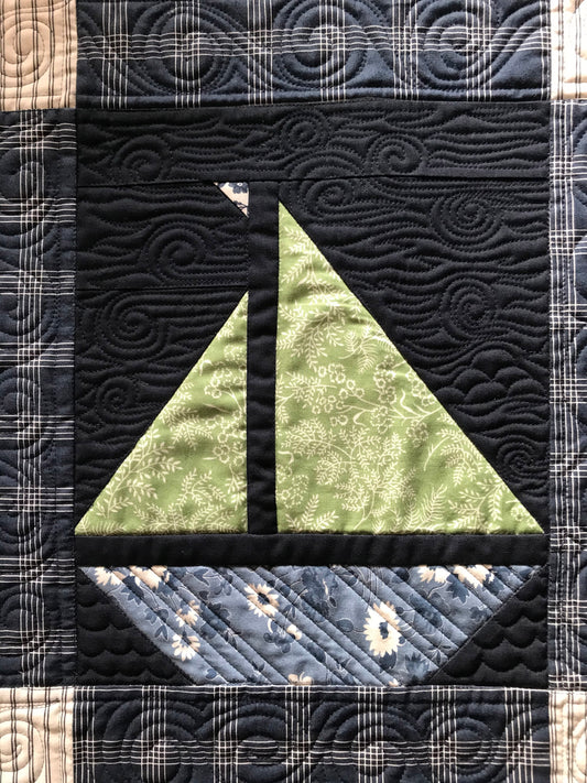 Custom Navy "Sail On" Sailboat Quilt - Made to Order