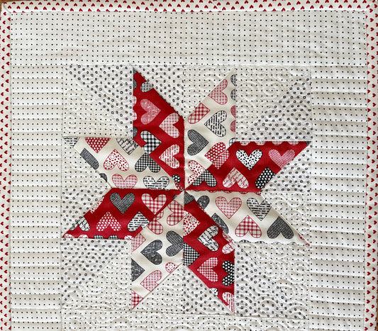 Table Runner - Handmade Valentine's Day Hearts - Red, Grey, Cream, Custom Quilted - 13.5"x55" - Ready to Ship