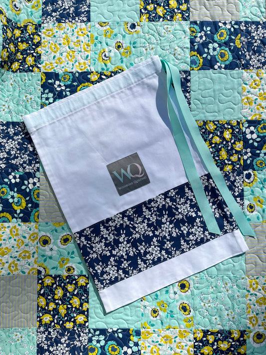 Springtime Handmade Baby Quilt, Patchwork Baby Blanket (36"x45) Navy and Aqua Florals - Ready to Ship!