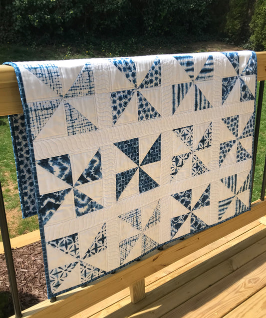 Shibori Pinwheels - Handmade Quilt (52.5x62) Custom Order