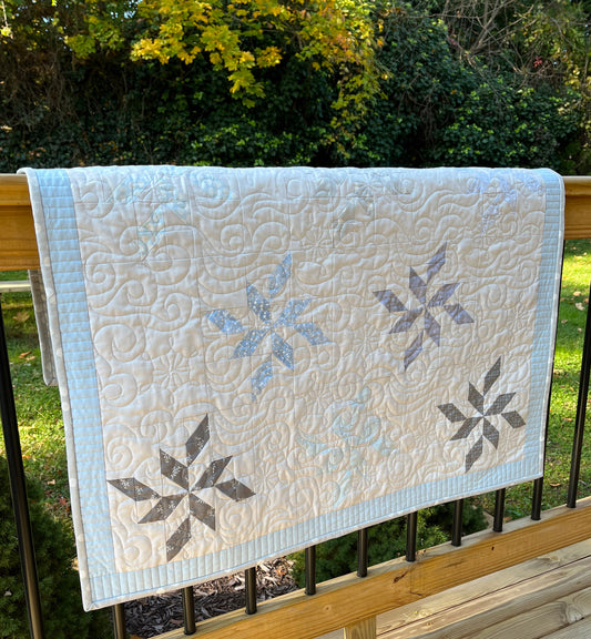 Winter Snowflakes Handmade Baby Quilt or Adult Lap Quilt - Grey, Powder Blue - Gender Neutral - Ready to Ship