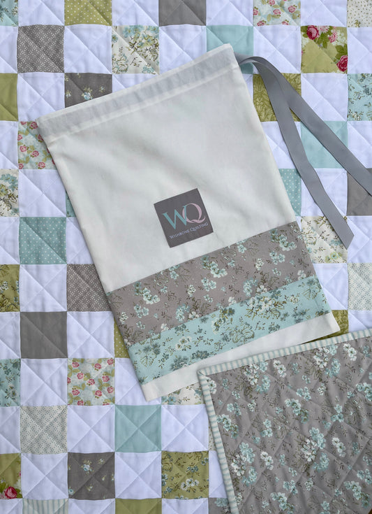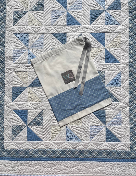 Handmade Baby Boy Quilt, Blue & White Baby Blanket (40.5x48) FREE Matching Handmade Bag, Ready to Ship and FREE SHIPPING!