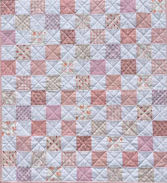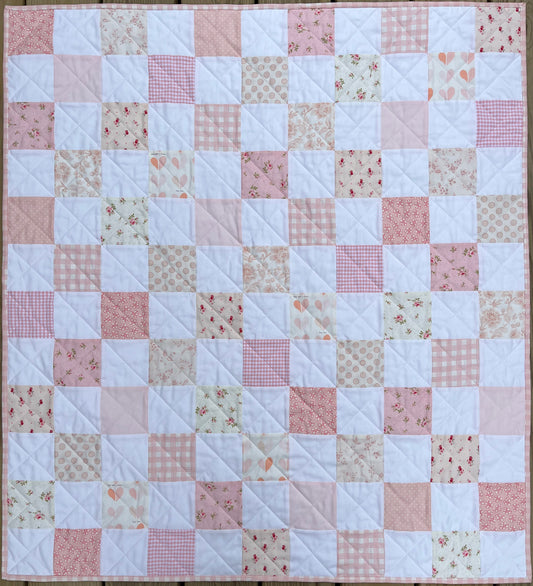 Handmade Baby Girl Quilt, Pink and White Patchwork Baby Girl Blanket (39x43) Ready to Ship!