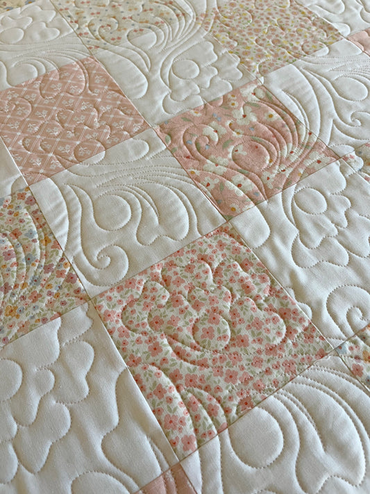 Handmade Baby Girl Quilt, Pink, Peach and White Baby Girl Blanket (37x46) Great MOTHER'S DAY Gift for New Mom - Ready to Ship!