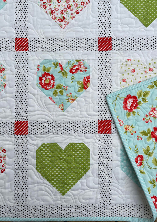 Handmade Baby Quilt - Baby Blanket, Adult Lap Quilt, Pink, Peach, Seafoam, Custom Quilted Hearts - Ready to Ship