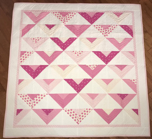 Handmade Baby Girl Quilt, Pink and White Patchwork Baby Girl Blanket (39x42.5) Great MOTHER'S DAY gift to new mom. Ready to Ship!