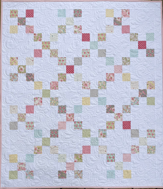 Handmade Baby Girl Quilt - Heirloom Baby Girl Blanket, Irish Chain Quilt - Beautiful Soft Colors (40x46) - Ready to Ship!