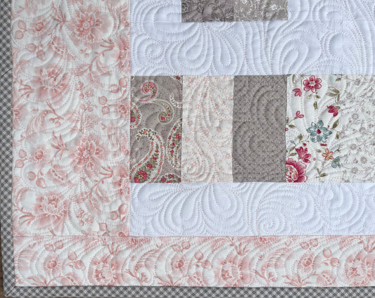 Handmade Baby Girl Quilt, Baby Girl Blanket (37"x43"), Grey Floral Back, Adult Lap Quilt, Ready to Ship!