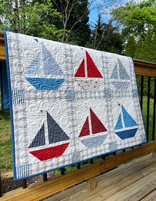 Handmade Baby Boy Sailboat Quilt - Nautical Sailboats Red, White & Blue Baby Blanket, Wall Hanging, Table Topper (36x42.5) Ready to Ship!