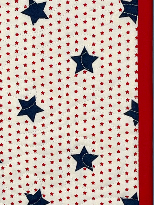 Handmade Baby Boy Sailboats & Pinwheels Quilt, Wall Hanging, WHITE with NAVY and RED Star Back (37x47) Ready to Ship!