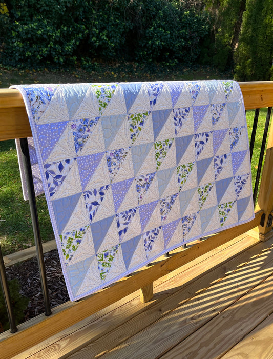 Handmade Baby Girl Quilt, One of a Kind Baby Blanket, Adult Lap Quilt, Custom Quilted Flowers, Purple, Periwinkle (36x40) Ready to Ship!